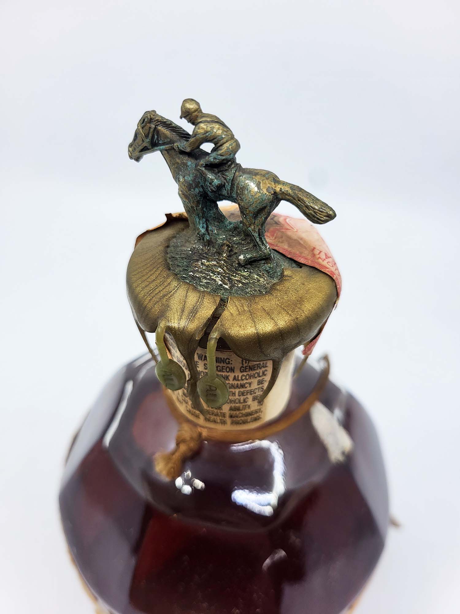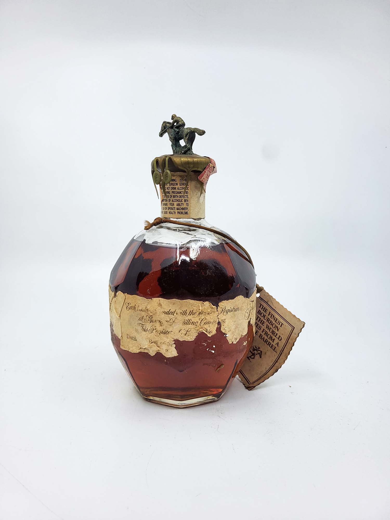 Old version of Blanton’s original with gold wax. Lovely fill and dark juice! Unfortunately as pictured the label on this one has seen better days! We can make out a 90 embossment indicating this was bottled around 1990.