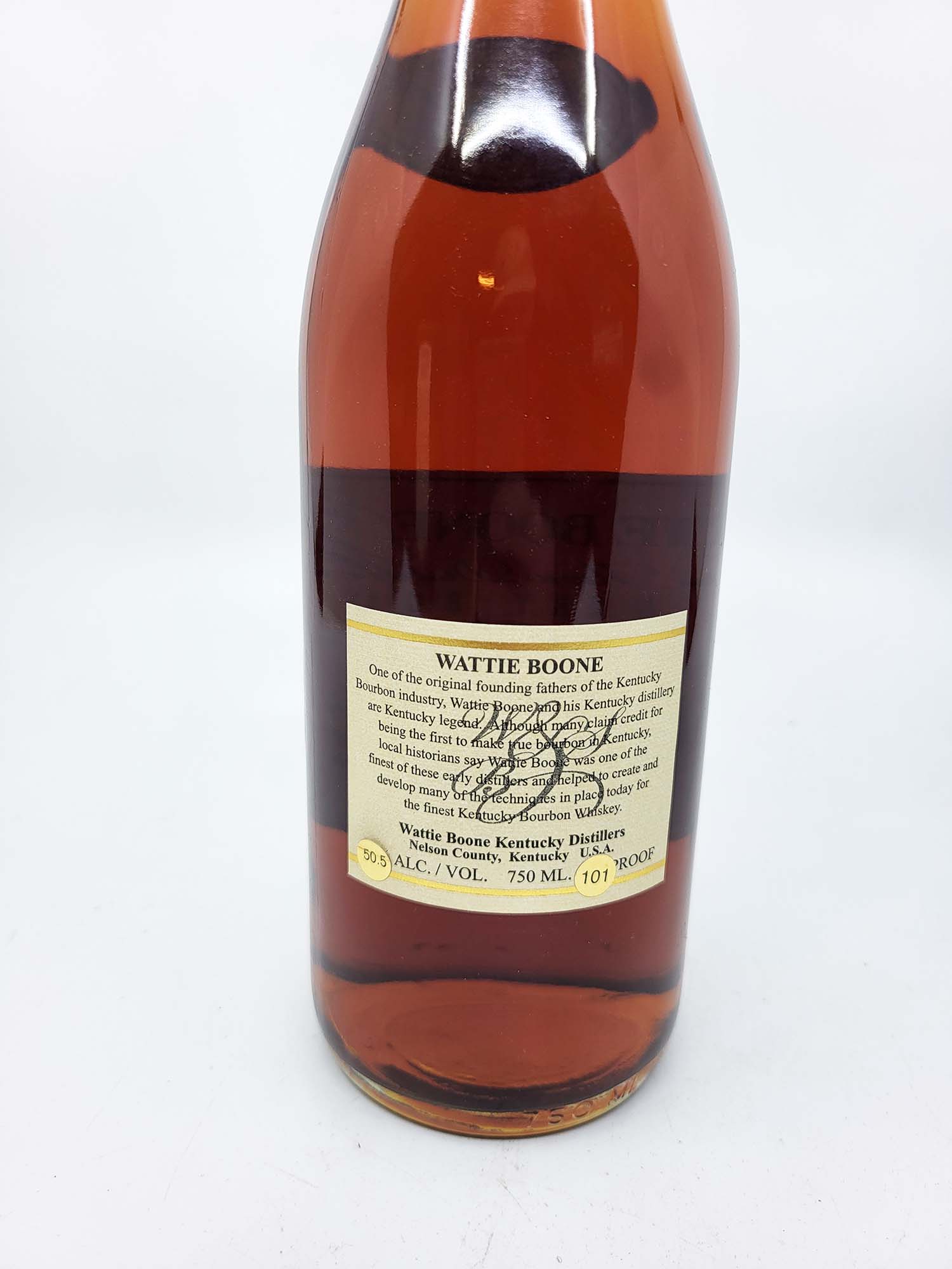 This one does not have an embossment but the Wattie Boone brand was a KBD – Kentucky Bourbon Distillers – product from the 1990’s.